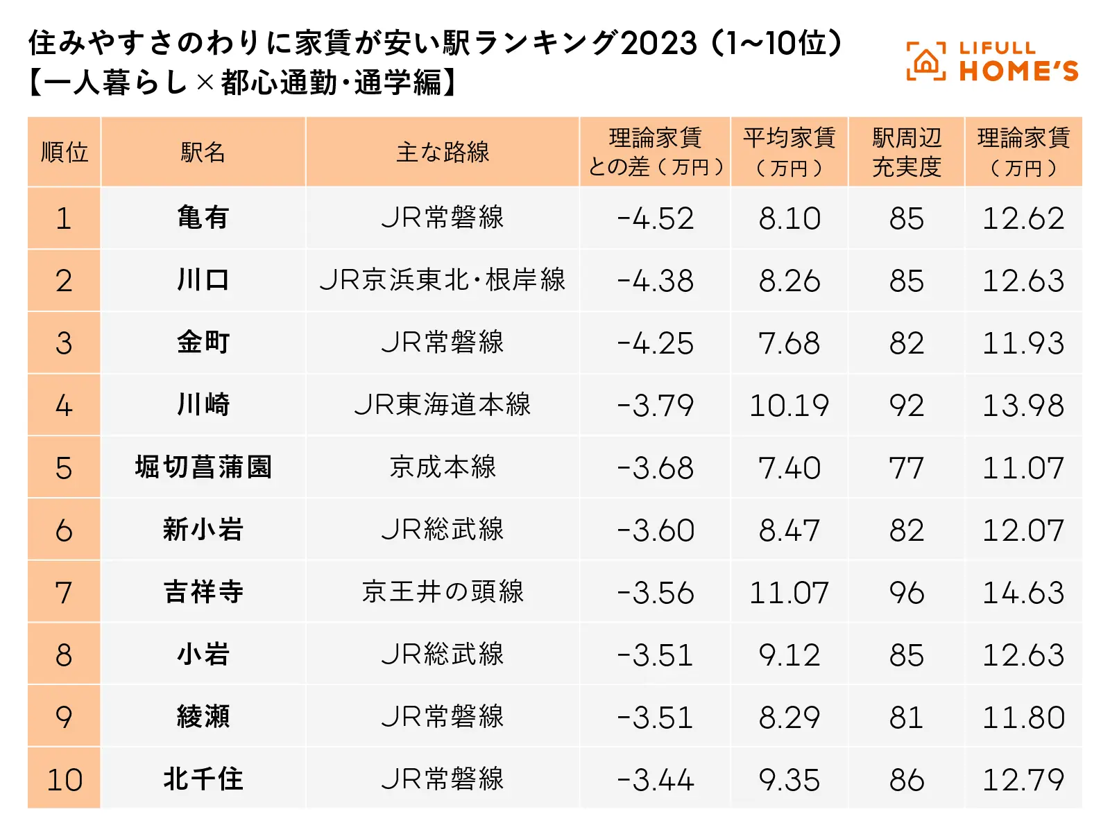 初めての一人暮らし!「近い・安い・住みやすい」駅はどこ? 【一人暮らし×都心通勤・通学編】住みやすさのわりに家賃が安い駅ランキング2023 LIFULL HOME'S PRESSが発表