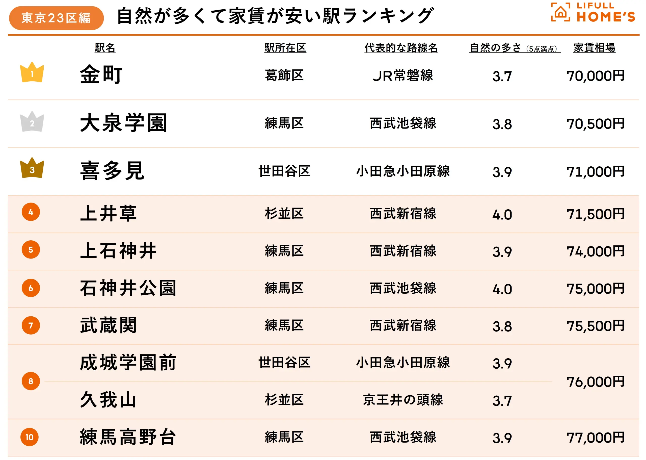 そこでLIFULL HOME'Sでは、夏を前に、緑が豊かになるこれからの時期に合わせて、東京23区における「自然が多くて家賃が安い駅ランキング」を発表します。