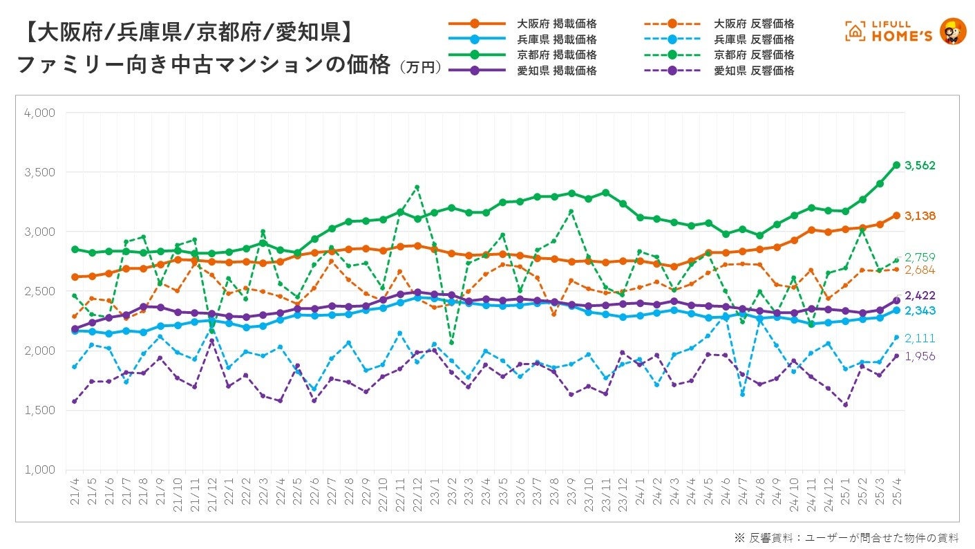 ファミリー向き:近畿圏で過去最高価格を更新。大阪市中心部では前年比153.2%と大幅アップ