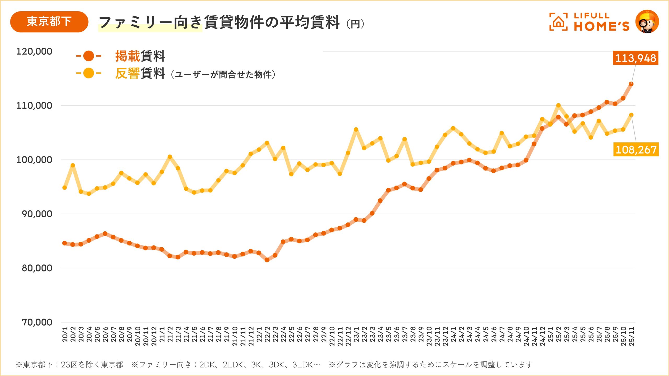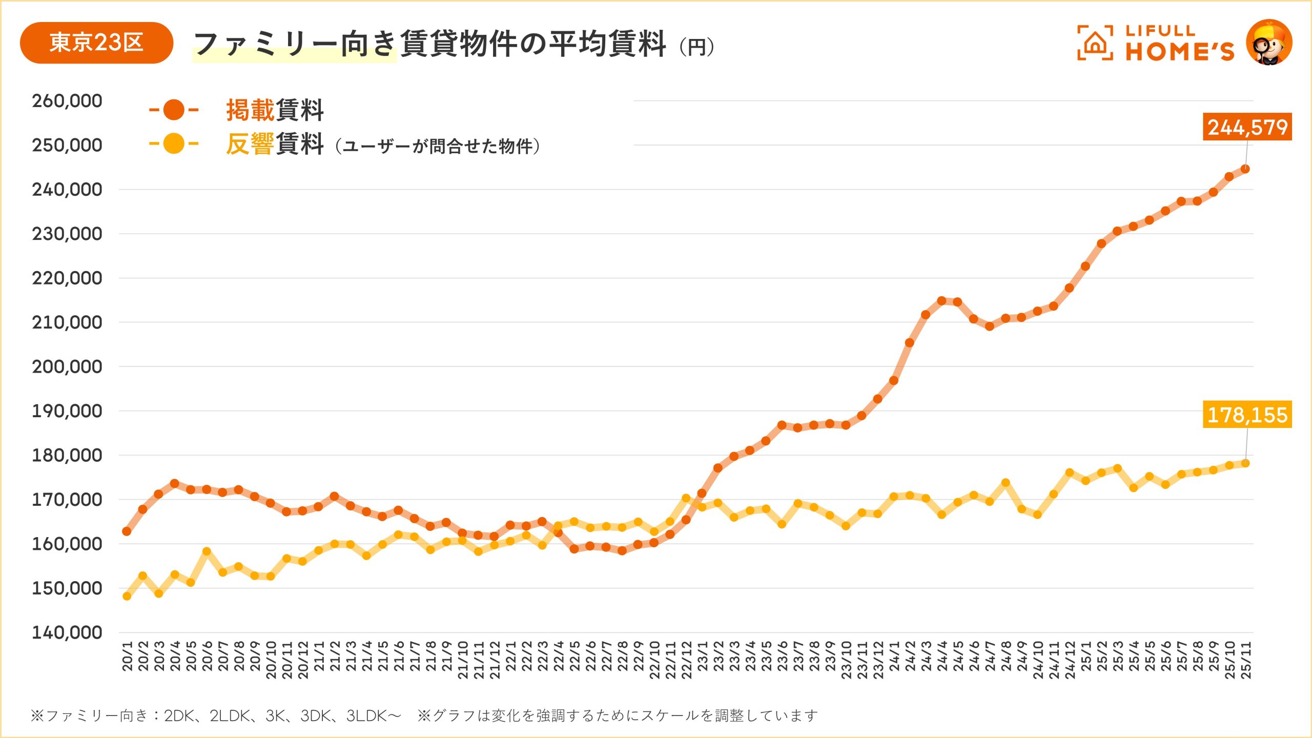 【東京|賃料動向】東京23区の掲載賃料はファミリー・シングルともに「過去最高」を更新(LIFULL HOME'Sマーケットレポート2025年11月)