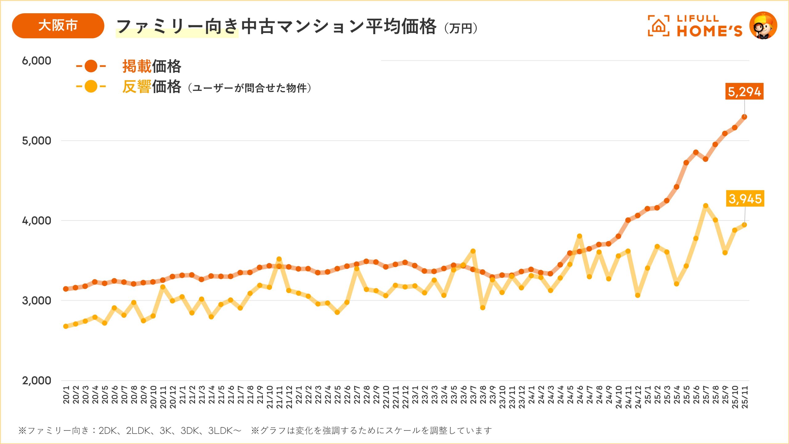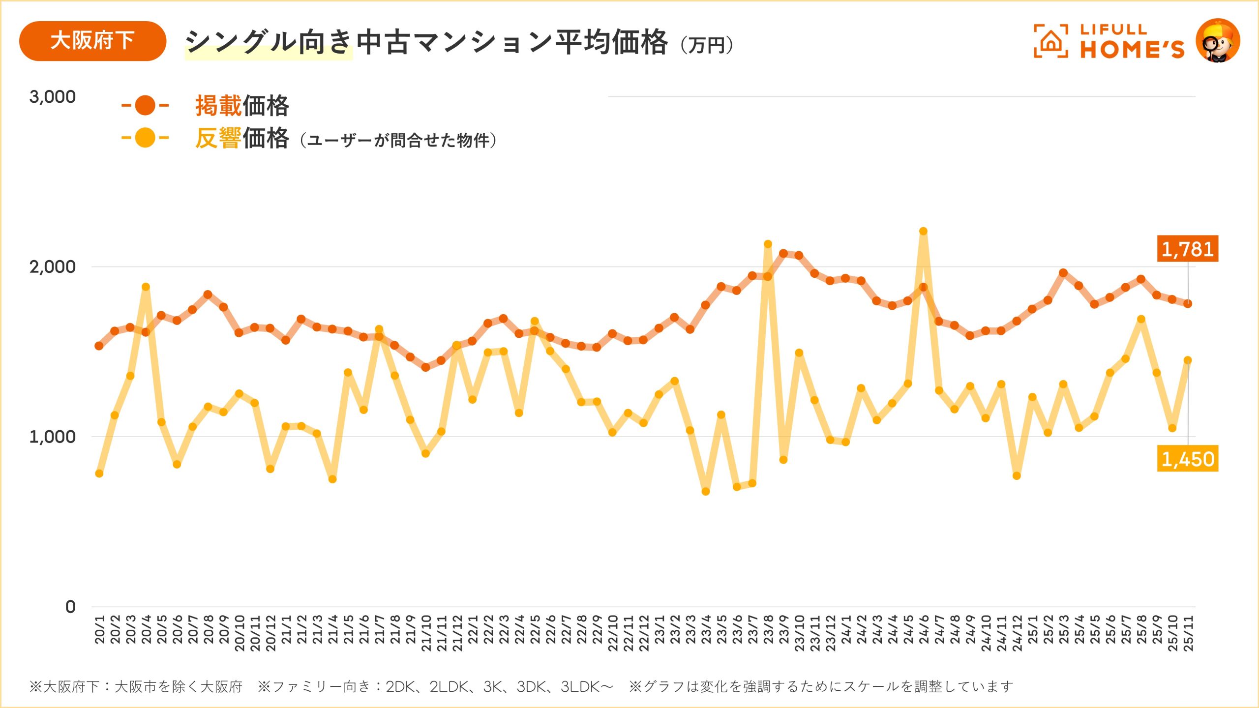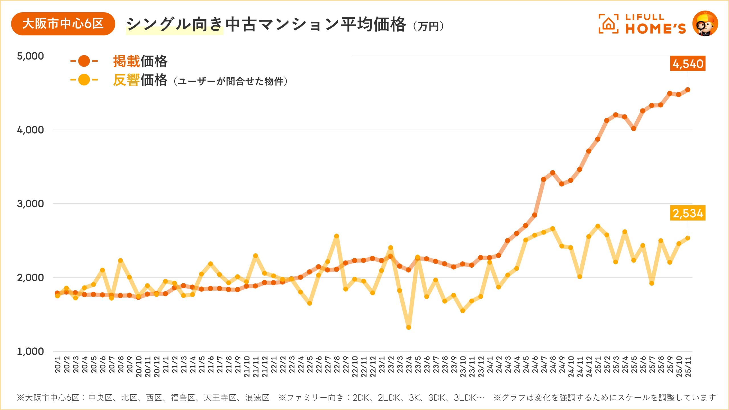 【大阪|中古価格動向】大阪市の中古マンション価格はファミリー・シングルともに「過去最高」を更新(LIFULL HOME'Sマーケットレポート2025年11月)