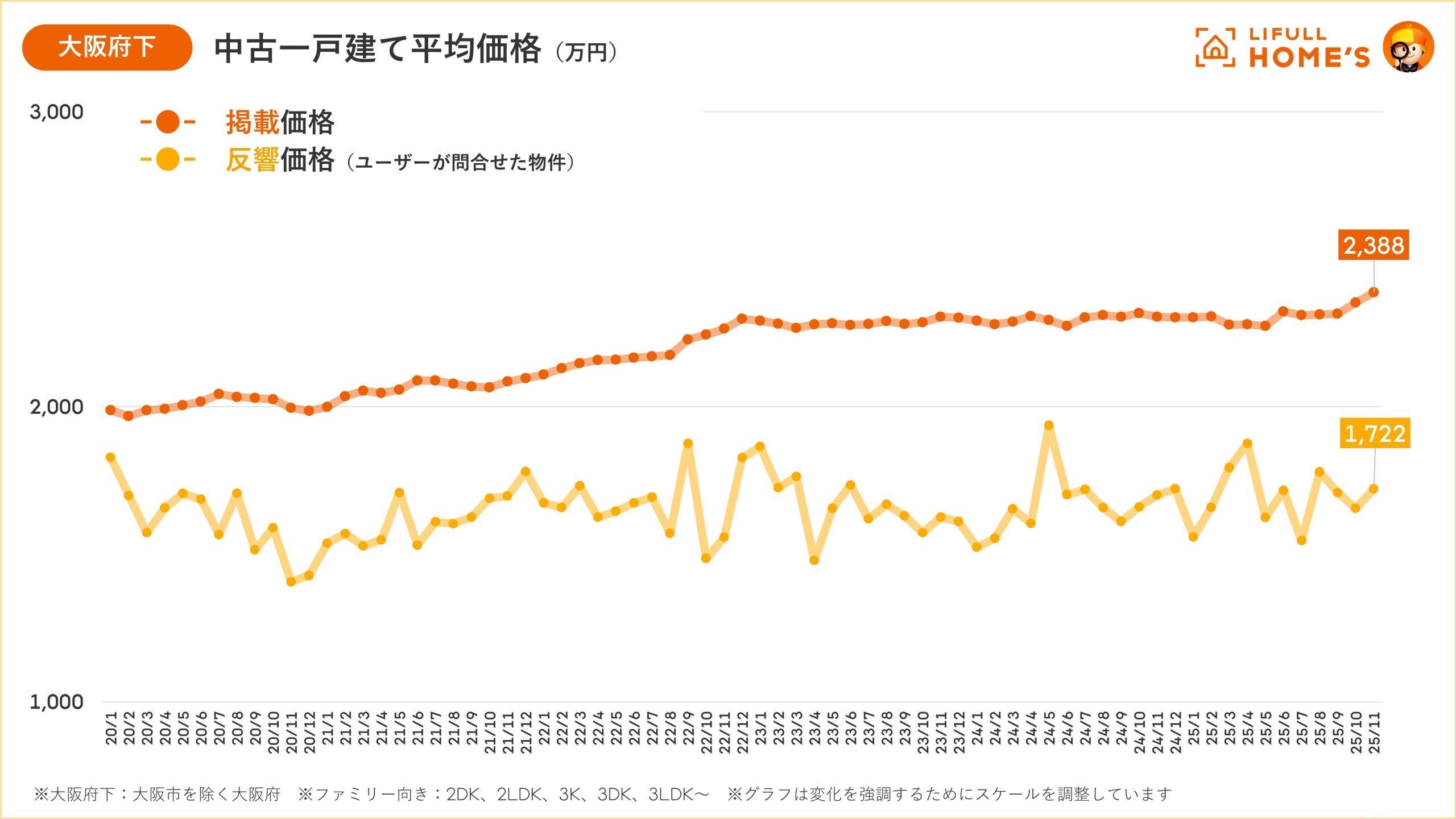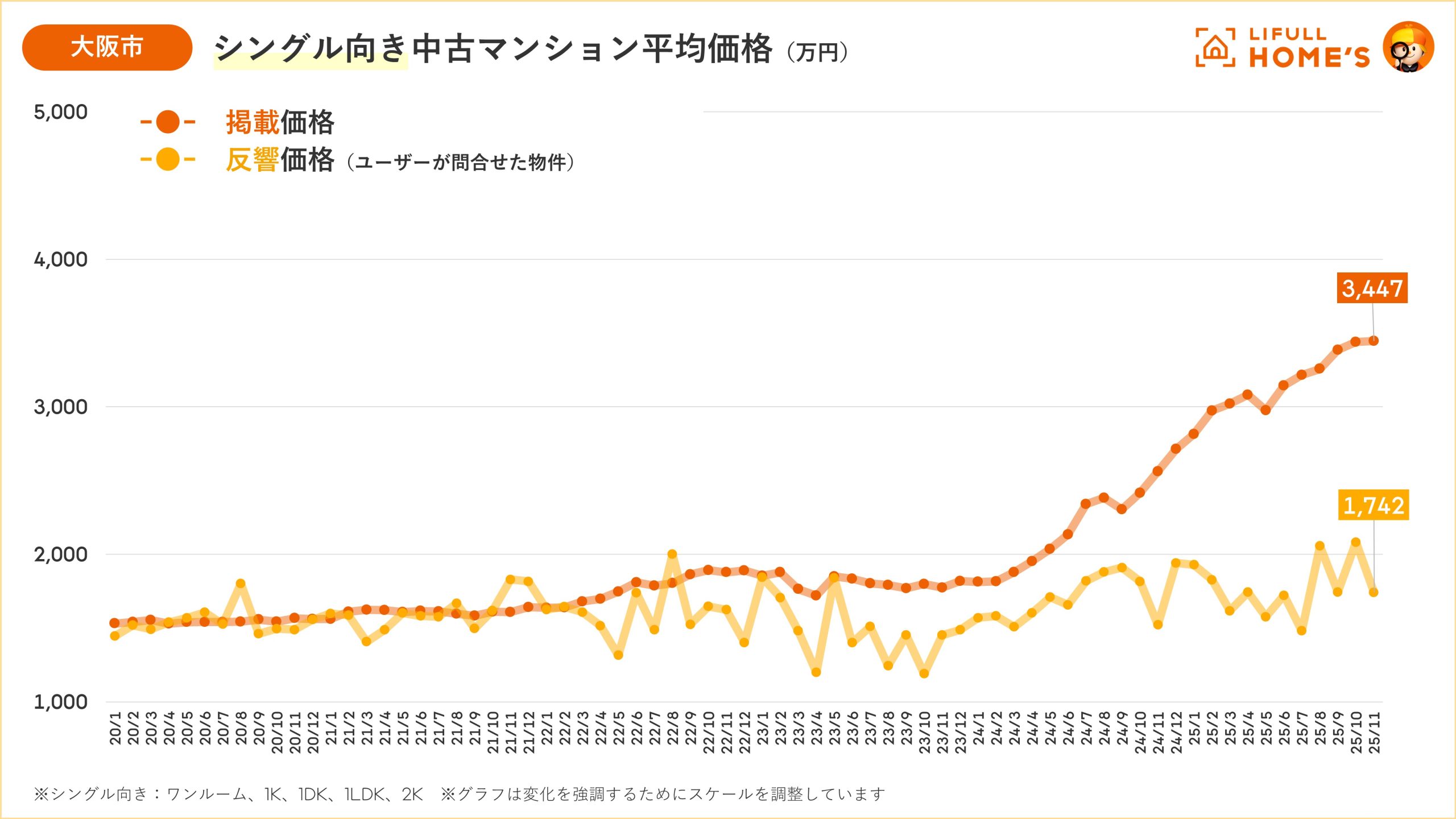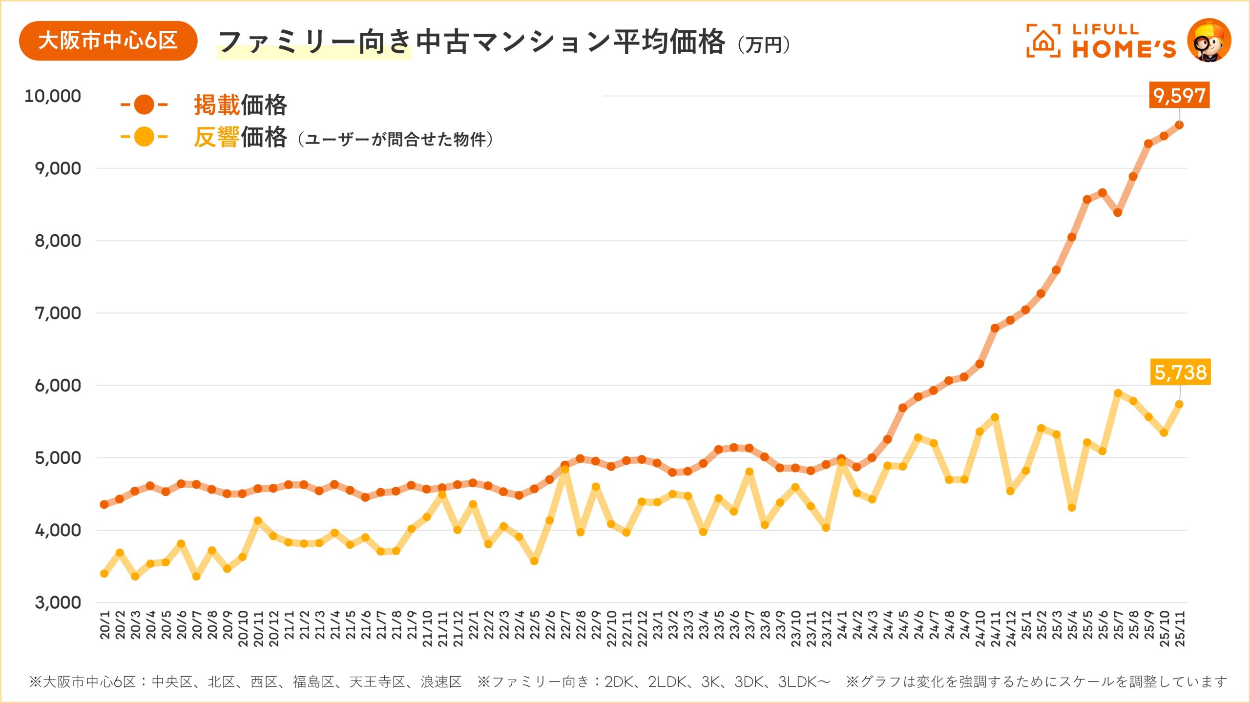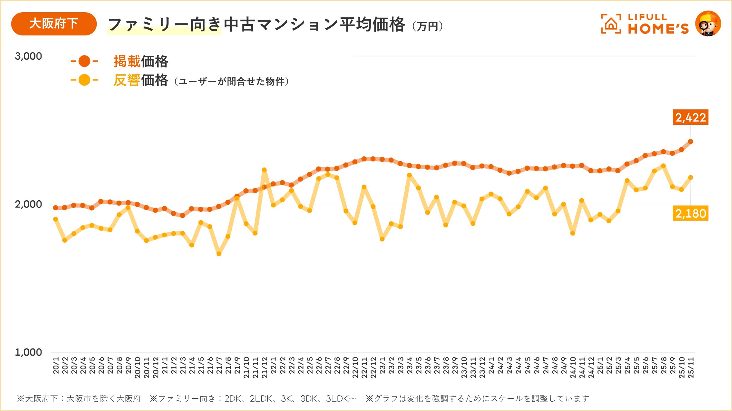 【大阪|中古価格動向】大阪市の中古マンション価格はファミリー・シングルともに「過去最高」を更新(LIFULL HOME'Sマーケットレポート2025年11月)