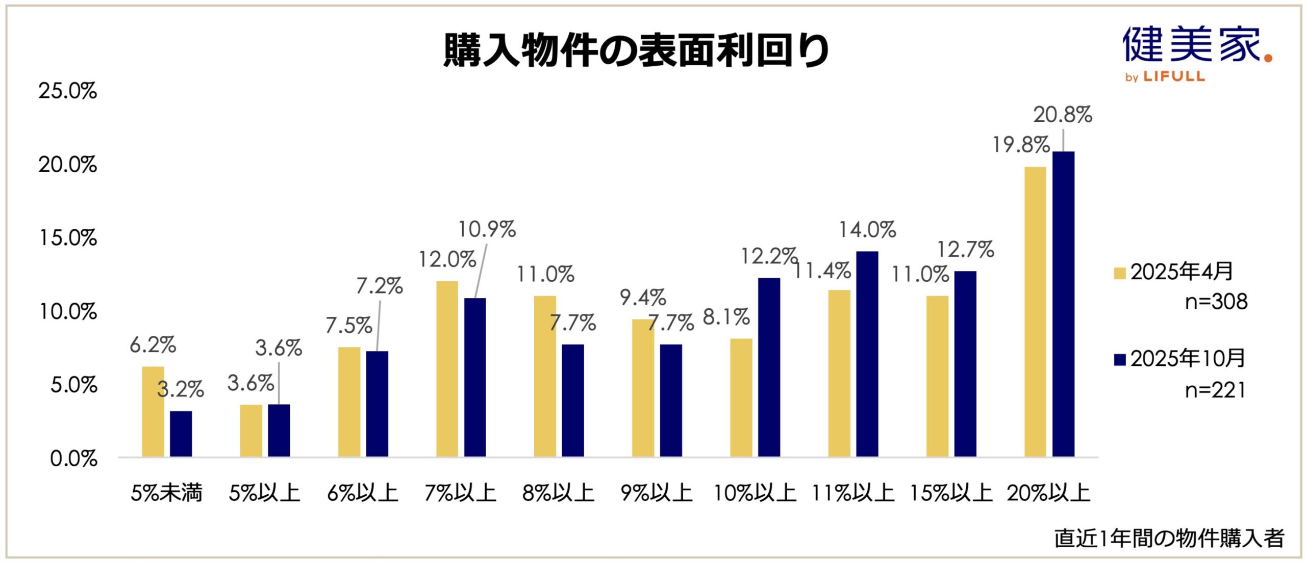 利回り「10%以上」での購入が約6割へ。「20%以上」は引き続き最多