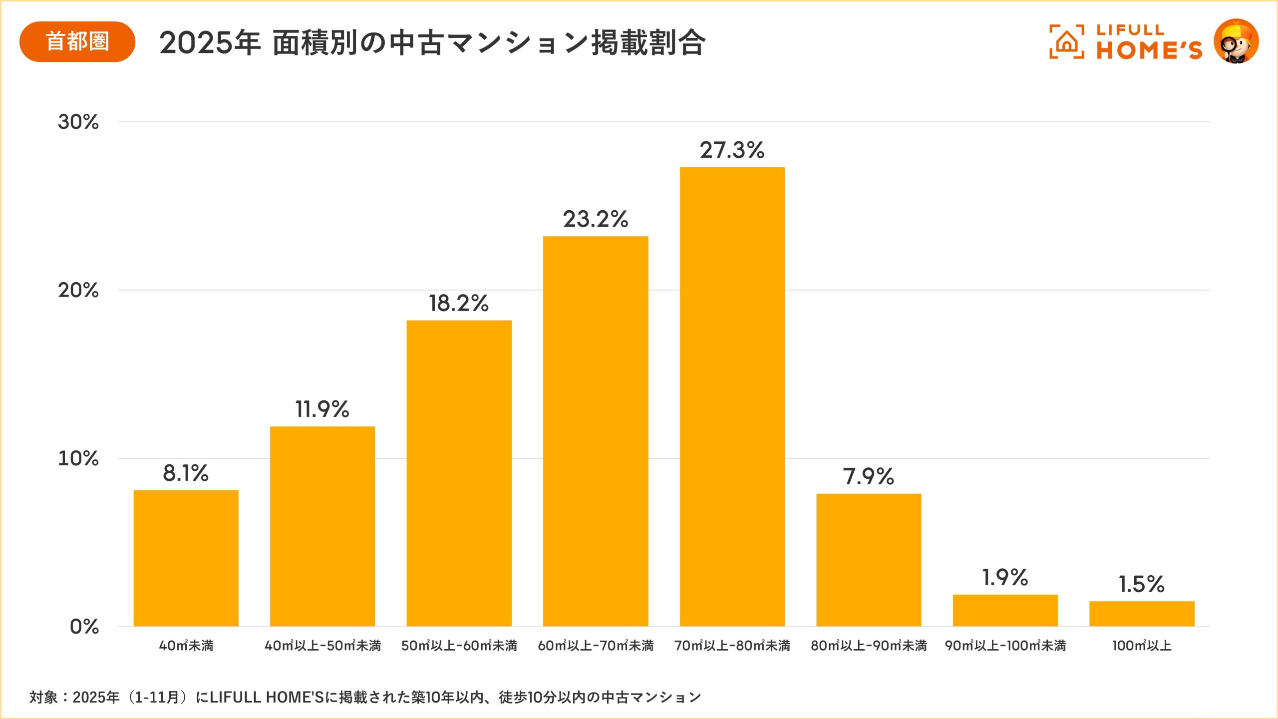 【首都圏】2025年 面積別の中古マンション掲載割合