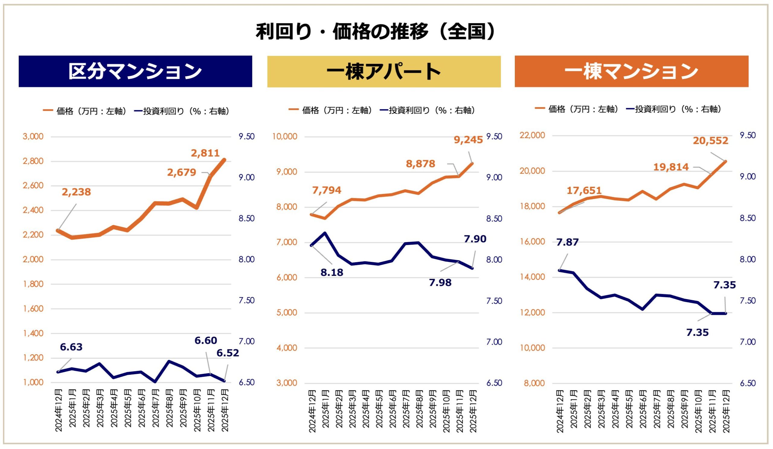 「収益物件 市場動向マンスリーレポート」2025年12月期