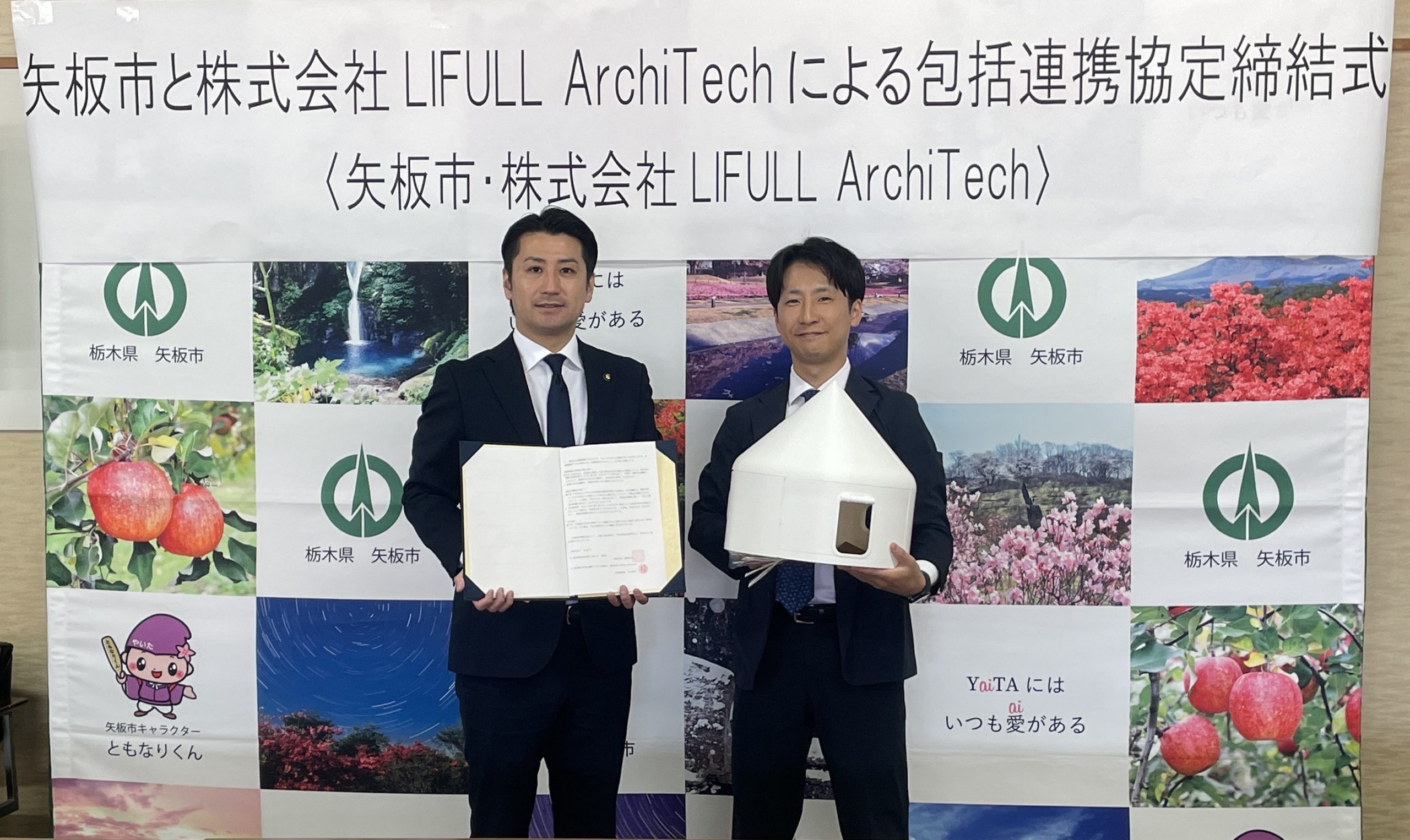 事業を通して社会課題解決に取り組む株式会社LIFULLのグループ会社である株式会社LIFULL ArchiTech(以下、LIFULL ArchiTech)は、2026年1月23日(金)に、栃木県矢板市と、インスタントハウスならびにその応用技術を活用した「包括連携協定」(以下、本協定)を締結しました。本協定に基づき両者が連携し、地域防災及び防災教育を軸に、地域活性化、まちづくり、関係人口の創出に取り組みます。