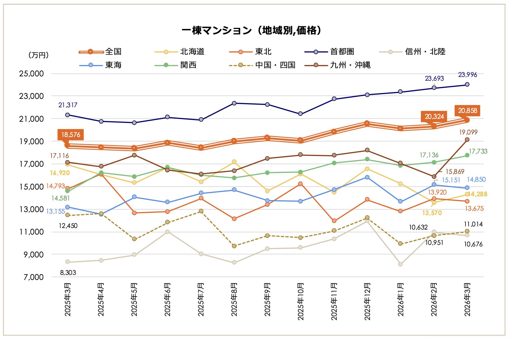 一棟マンションの全国平均価格が最高値を更新 「収益物件 市場動向マンスリーレポート」2026年3月期